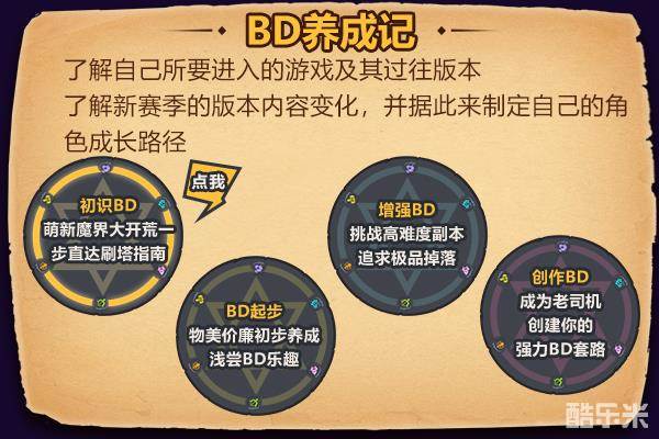 无论在哪个赛季,都会有许多令人拍案叫绝的花式BD不断涌现。《魔界塔》赛季专题页贴心地为各位勇士准备了修炼BD的进阶之路,只需要四步即可了解修炼BD的套路。从初识、起步、增强到创作,勇士只有了解自己所要进入的过往版本以及新赛季的版本内容变化,据此制定自己的角色成长路径,才可以在此过程中将BD运用纯熟,由萌新成长为“老司机”。