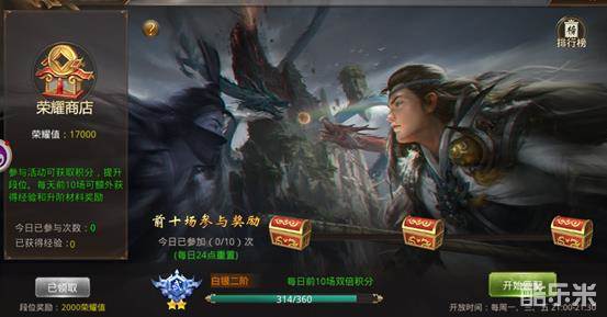 5、玩家参与活动和其他玩家进行1对1决斗,系统会根据战斗结果获得积分,积分可提高段位,段位越高每天获得的荣耀值越多