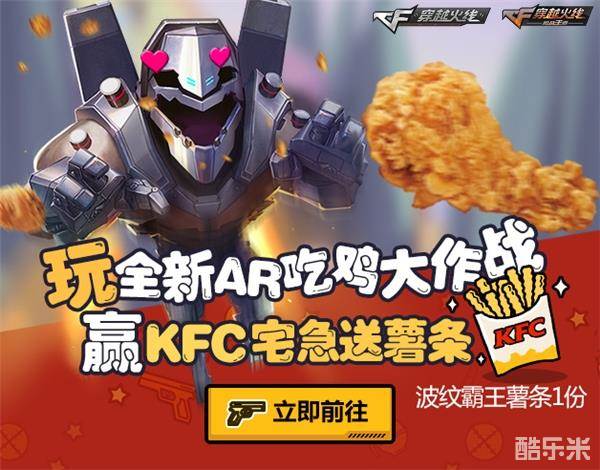 除定制武器和角色之外,KFC与CF的首次跨界合作还将带来玩法上的创新——推出CF手游AR玩法,开启吃鸡大作战,听起来就很刺激!据悉,活动期间将开启一场KFC门店枪王争霸赛,进行争夺CFKing荣耀!还有定制英雄级武器、KFC美食福利、神秘新角色、绝版武器,精彩的PK活动等着你,更有CF大明星亲临现场和玩家零距离互动。心动,就赶紧行动,来征服KFC门店吧!