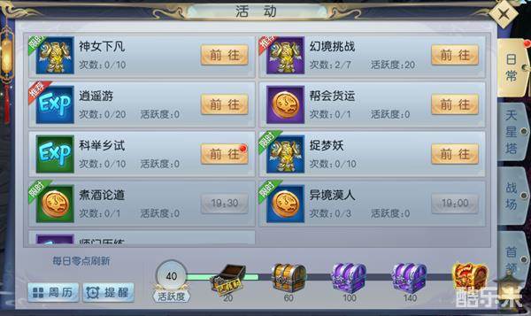 捉梦妖组队玩法需要玩家等级达到35级以上,满足3人以上组队。捉梦妖每天出现在百鬼林、化天府、沧溟岛等处,在12:00至23:00的整点、15分、30分,分批出现,持续15分钟。挑战胜利之后将获得特殊道具、梦妖的珍藏、宠物宝箱和宠物技能宝箱。