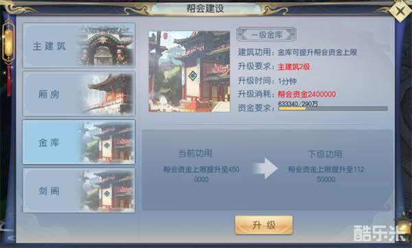 作为帮会的成员,每个人都肩负着帮会建设的重任。升级主建筑、厢房、金库、剑阁,可以提升帮会等级,解锁更多帮会技能。玩家对帮会贡献越大,升级也将更快。对帮会有着特色贡献和拥有极高声望的玩家,可以申请成为帮主、左右护法、长老等。
