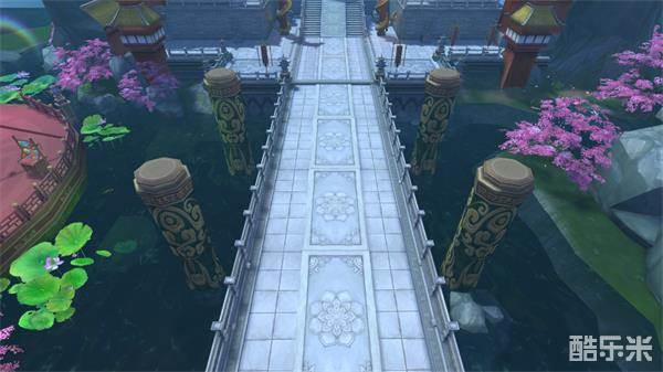 莲花一直与佛教有缘,《魔剑侠缘》作为一款仙侠手游,自然与佛教脱离不开。在宫殿外面,是莲花雕刻的大理石花纹,宫殿走廊两侧,有器宇轩昂的石柱,手执武器巡逻站岗的士兵,双龙缠绕的朱红色柱子,整个场景庄严而肃穆,尽显恢弘大气。走廊旁的莲花,光影照射下微波荡漾的池塘,让玩家在感受雄伟壮阔的宫殿同时,也能极致体验《魔剑侠缘》的仙侠之气。