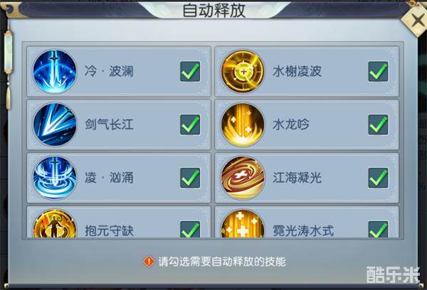 在主界面技能面板中,《魔剑侠缘》手游以“4主技能+1被技能”形式呈现。玩家点击“技能”,选择挂机设置。玩家可以根据自己的需求,在12个主动技能选择中,随意选择4个主动主动技能。