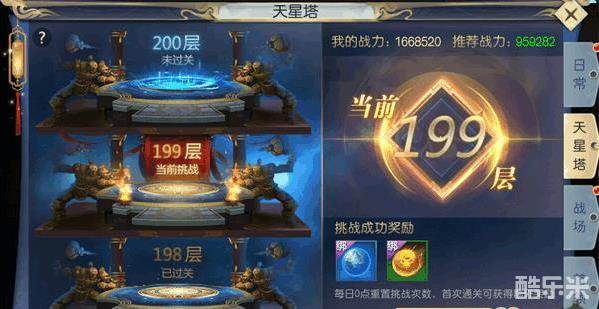 天星塔每日0点重置层数,重置后可扫荡至历史最高层,首次通关将获得额外奖励。天星塔的每层拥有5次挑战机会,在重置后刷新挑战次数。玩家可以根据自己的战力,参与天星塔挑战。取得胜利之后,将会获得丰厚的奖励和稀有材料。