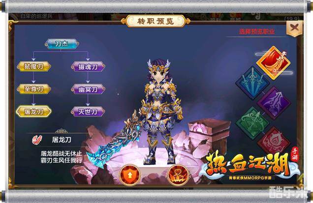 刀客依然还是刀客,不过至尊刀将会成为更霸气的屠龙刀,刀出屠龙震慑四方。而邪派的幽冥刀则成为灭世刀,生灭之间一刀掌握。不论正邪,都会增加两个转职技能,一个被动一个主动,被动技能通过气血增加生存能力,而主动技能则是在伤害和控制上各有千秋。