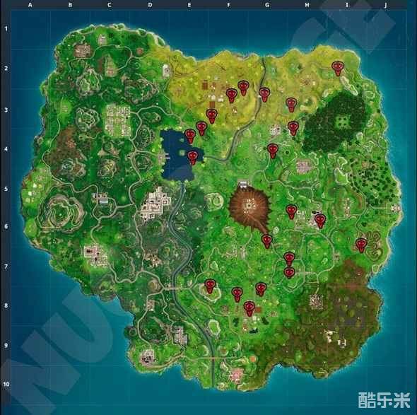 Reddit上一名名为‘NugSponge’的网友发布了一张关于地图上苹果坐标的地图。如果你非常急切于想品尝一个产自堡垒之夜岛屿上的苹果,可以尝试去这些地方。