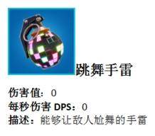 跳舞手雷也被叫做尬舞手雷,是一个很有意思的手雷,没有伤害,但会让被手雷命中的玩家强制尬舞5秒,受到一定伤害后停止跳舞。