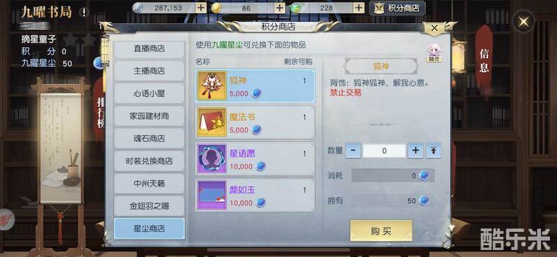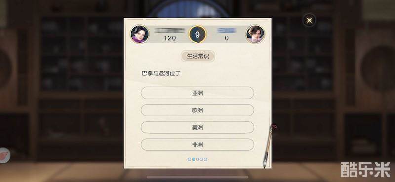 “巴拿马运河在哪个洲”、“如何获取家族贡献”、“XX比赛第一届冠军是谁”……九曜书局里的题目种类丰富多样,涵盖文、理、娱乐、游戏等各方面内容!每次对决五道题,越快回答、答对越多就能获取更多得分,赢得对决胜利!