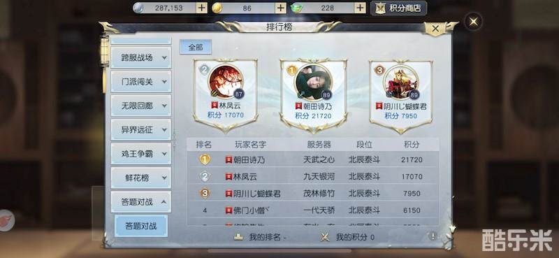 此外,天命者们还能看到自己在好友中的积分排行情况以及全服排行情况。对头脑有信心?那就多多参与对决,在排行榜上夺得魁首吧!