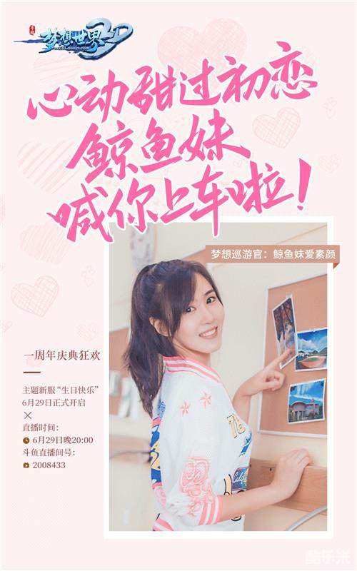 一周年庆典活动丰富,当然不止在游戏里会给各位少侠送上惊喜。在6月29日当天,新服“生日快乐”正式开启,知名美少女主播鲸鱼妹爱素颜将会化身“梦想巡游官”与大家一起征战梦想大陆!素颜直播的鲸鱼妹因甜美的外表俘获了众多粉丝的心,被粉丝称为“甜过初恋”。聊天可爱又有趣的她将会在《梦想世界3D》发生怎样的故事,让我们拭目以待!