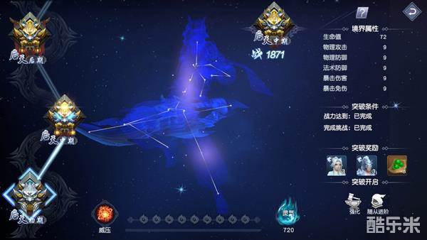 通关战神殿玩法可获得灵气值,灵气可用于境界修炼,灵气升星满9颗时可进行突破试炼,通过试炼就可以提升修炼境界啦~~