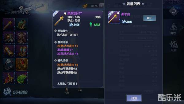 主角一共可以穿戴10件装备,每件装备都有各自的基础属性、基础词条和随机词条。基础属性为装备固定属性,基础词条为掉落装备时随机生成,而洗练可以随机修改基础和随机词条。