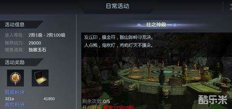 鬼吹灯3D日常活动能给玩家提供更好的资源产出,如果玩家想要更好的参与其中,接下来就来了解一下鬼吹灯3D活动到底能够为玩家带来怎样的收益呢?鬼吹灯3D中以产出经验为主的日常活动主要是“柱之神殿”和”冥殿遗冢“。这两大活动每天可以完成5次,经验奖励丰富,可千万不要错过哦!