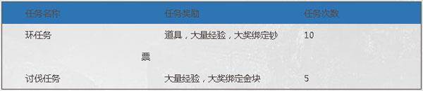 日常任务包括任务和讨伐任务,环任务可以获得大量经验和钞票奖励,讨伐任务获得大量金块和绑定金块奖励。