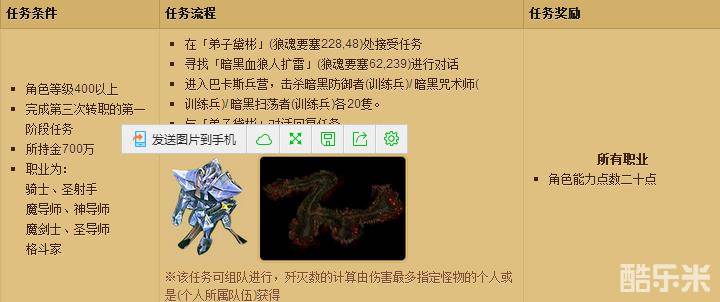 剑士由于要学习连击,这个任务是剑士的专属任务。打怪地点同样是在森林就可以掉落,但是由于剑士的攻击属性在220的时候相对非常低,因此组队做任务也使明智的选择,当然神装人物除外。