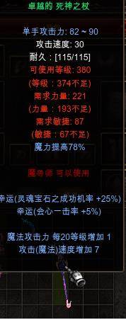 当然PVP方面,死神之杖由于PVP属性的存在,必然是首选,即使是非卓越的也是。而且死神的加成百分比也是非常高的。卓越死神打怪也十分给力,相当于大天使之杖。