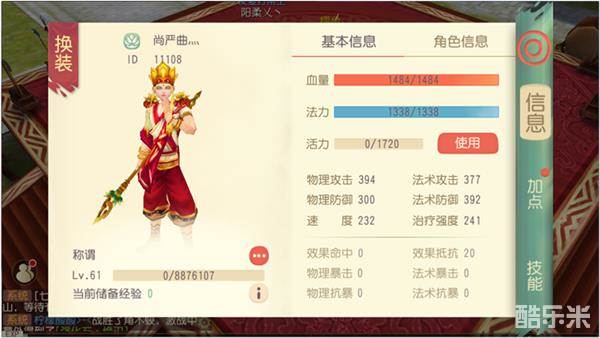 芭蕉洞门派,主要的攻击属性是物理攻击、物理暴击。活力可以用来制造打造符、临时符。