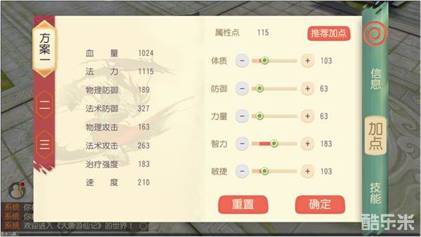 舞乐坊默认加点是1体4智,适合平时练级。PK加点比较多样,可以2体1防2敏,血高防高速度快;也可以1体1防3敏追求高速度;3体2防全防御的加点也是很凶的,续航能力很强。