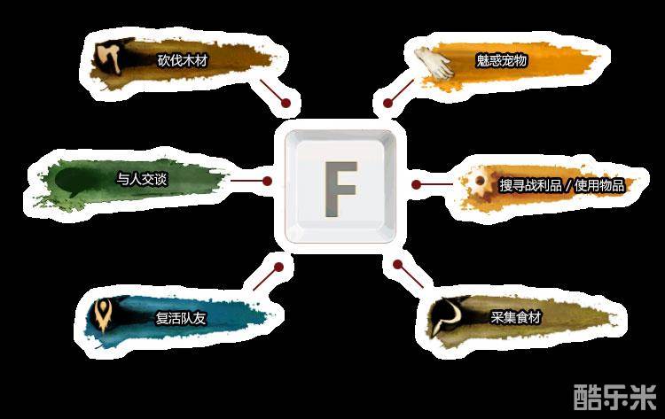 在冒险过程中,玩家的角色可以通过F键与周围场景中的事物发生互动:与人交谈,魅惑宠物,搜刮敌人的尸体,使用炮塔,采集工艺原料……任何与环境的互动,统统由万能的快捷键F完成!