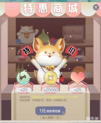 大人在6月27日-7月5日活动期间,仅需1元即可购买超值礼包组合:【祈玉*20】、【金币*25000】、【体力*25】,每位大人仅限1次购买机会,走过路过不要错过呀~
