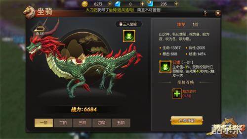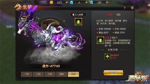 在《刀锋无双2》里,每一只坐骑不但能增加主公的移动移速,还能增加主公其他属性,如果坐骑珍稀度越高,则属性加成越高!每一只坐骑皆拥有其专属技能,如果各位主公拥有坐骑之后,可以选择坐骑技能附体,坐骑技能附体之后将会使主公拥有更强劲的实力!当然,坐骑属性与技能加成并非一成不变!每一只坐骑皆有五阶可进化,各位主公可以通过坐骑碎片对坐骑进行升阶,阶数越高,所需坐骑碎片也会越多,不过属性加成和技能加成也会更加可观,更重要的是,坐骑也会随着每一阶的提升解锁更炫酷的外观哦!