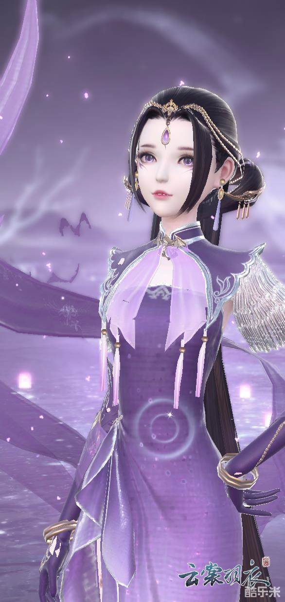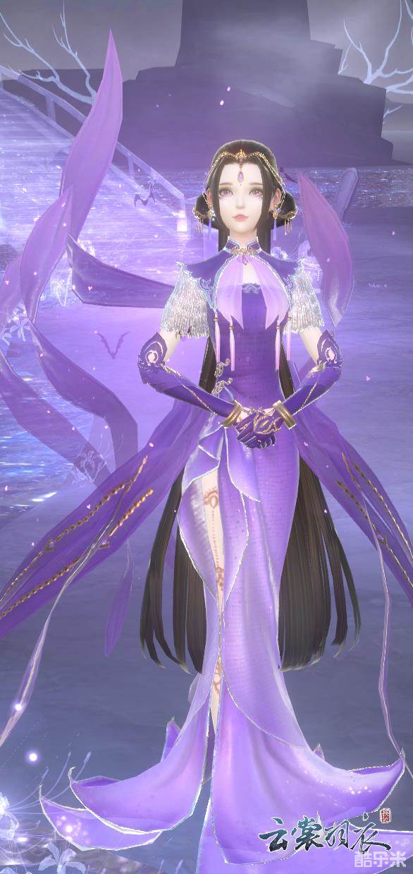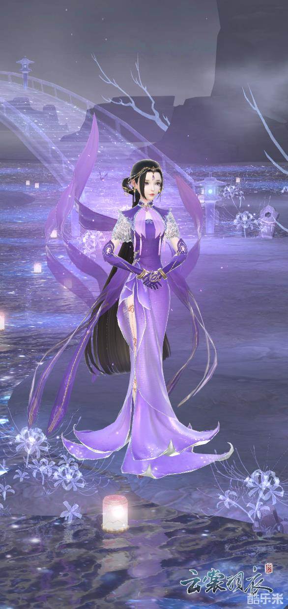 在游戏中,曼罗这一套装整体呈紫色基调,姿态曼妙,裙摆与曼陀罗花很像,透着满满的妖气呢!