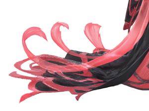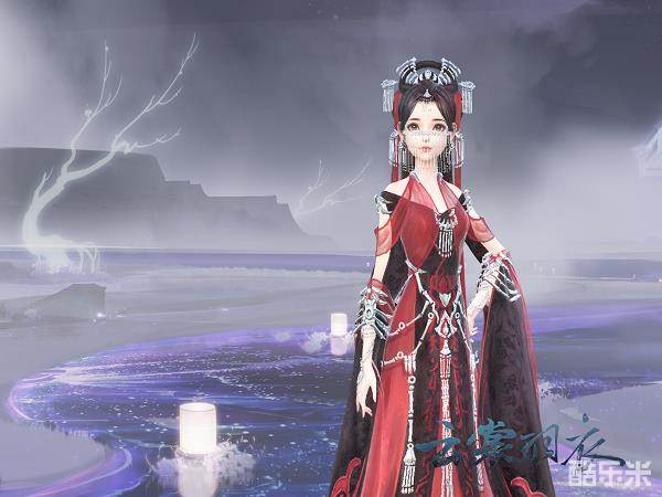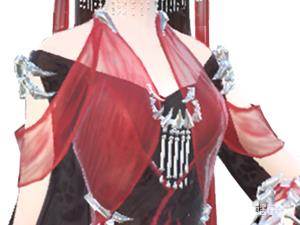 以红、黑两色为主色调,采用光滑又带有厚重感的深色丝绸来表现黑色的部分,覆盖在最外层的轻纱,柔软地贴合着身体的曲线,显得婀娜妩媚;裙摆则是彼岸花花瓣的具象化,明确地提示了造型主人的身份。