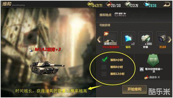 Tips:在选择战车维和时,优先选择S级,因为S级比SS级碎片合成量低,收集起来更容易一些。当然,如果你是土豪大佬,已坐拥大量S级战车,那么请选择SS出战维和!
