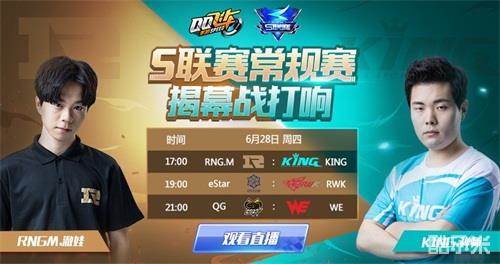6月28日揭幕战将于17点打响,季前赛积分榜四强在首日上演强强争霸。王者之争,谁主沉浮?季前赛积分榜头名KING战队与榜眼RNG.M将吹响揭幕战的号角,更有WE与QG的豪门对决。季前赛积分榜第七的RWK在首轮将遭遇重组后星光闪耀的eStar,是颜值和实力俱佳的RWK.林逸更胜一筹,还是eStar.青山与eStar.羊随的新双子星组合首战告捷?让我们拭目以待!