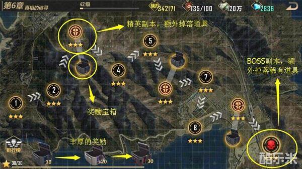 在每个章节中都有普通副本和精英副本以及BOSS副本。