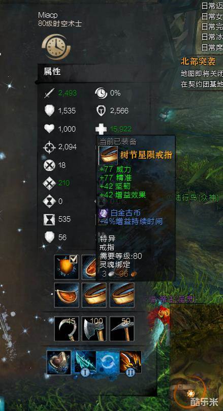 主要就是防具和武器 粉色指挥官 武器打 初级敏捷和超级狂怒. 背部随便选一个橙色PPF 打一个白金古币. 其他5件首饰全部是橙色指挥官首饰+5个白金古币 把自身搭配出89.66%的增益时间就可以了.