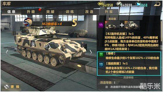 到了中后期,就要根据战车的属性和技能选择装备了。以美系M2维修车为例:
