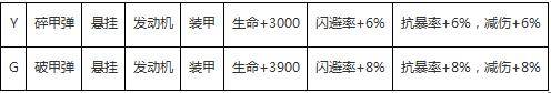 每类装备分四个系统:导弹,悬挂,发动机和装甲。其中,导弹对应的属性是火力值,悬挂对应的是生命值,发动机对应的是生命值,装甲对应的是装甲值。