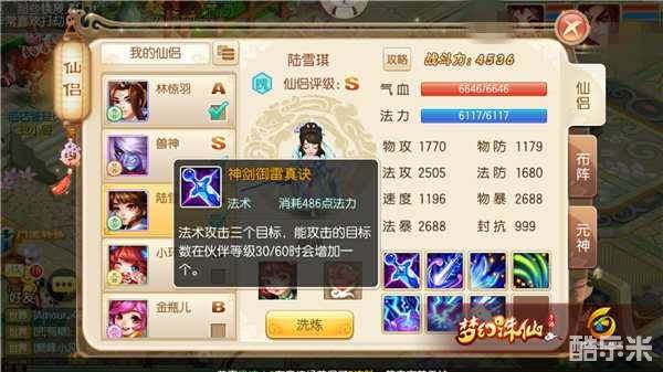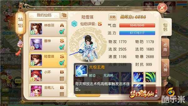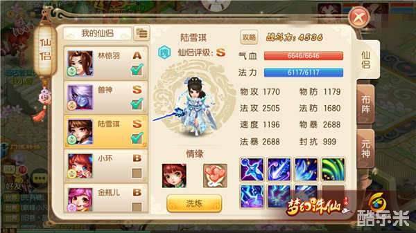 陆雪琪在仙侣中的评级是S级,这也注定了她的不凡。仙侣的评级的等级越高自身的属性就越优秀,虽然仙侣的属性不能直接决定仙侣的价值,但是可以使得我们在培养的时候可以节约大量的资金哦!在陆雪琪的各项属性中,她的法攻属性是非常不错的达到了2842,这一优势可以使得她在战斗中具有远超其它输出型仙侣的表现,可以打出非常爆炸伤害。所以我好好利用这一优势,将她在战斗中的作用发挥到最大。
