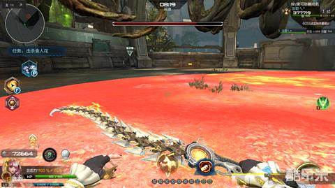 吐完火之后就会开始出小怪并且打手会一只跟着一个目标打,最好要先把小怪清理掉,因为有一种绿色的小怪会喷毒液,要是碰到毒液会被减速被打手跟上那就凉了,然后他就会释放龙卷风他会开始转起来并且会投掷出炸弹,如果被命中会被减速而且会受到伤害,玩家只需绕着柱子走就能轻松躲避了。