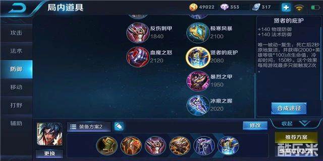 Tips:如果游戏拖入大后期,后续装备依次是魔女斗篷和贤者的庇护,还可以考虑霸者重装。