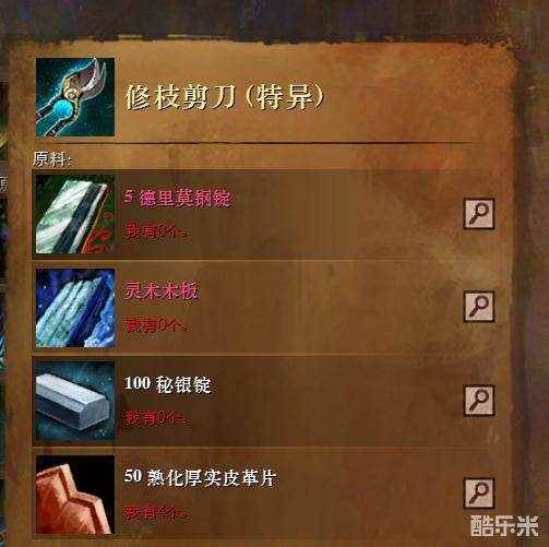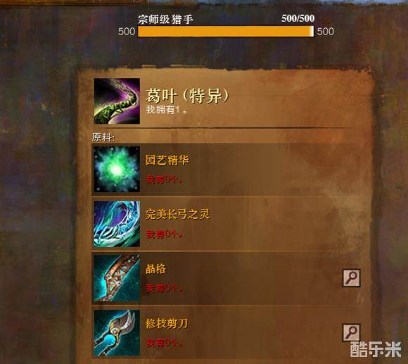 注:最后一级制作葛叶的材料不多~如图: