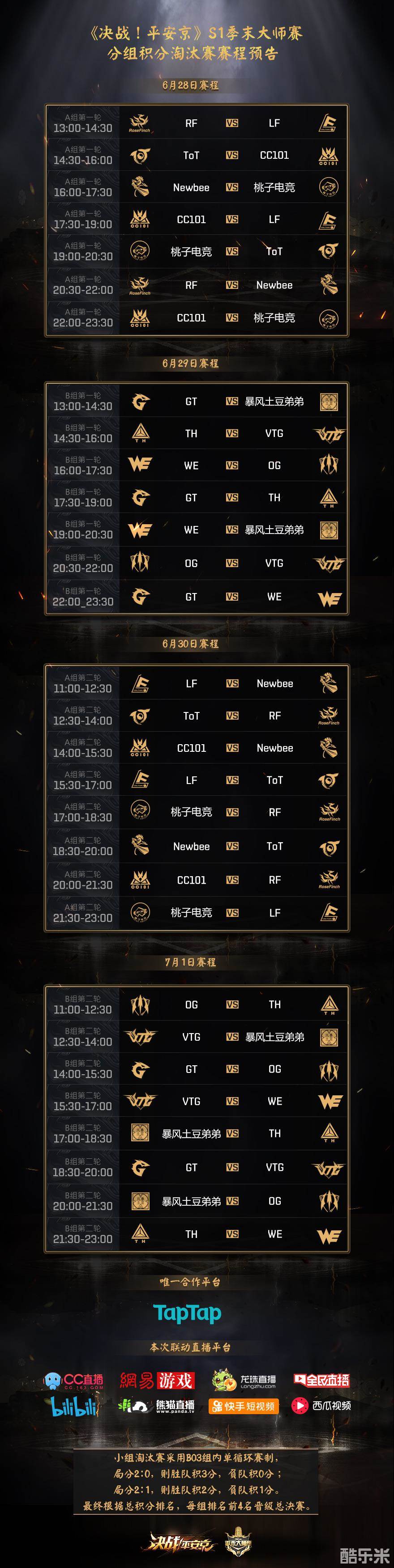 最终将根据总积分排名,每组排名前4名的战队晋级总决赛,第5、6名直接淘汰。