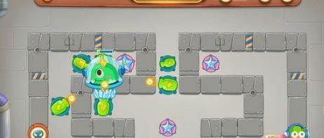 2.这关他会有一个已经准备好的瓶子炮台,首先把正对下方的的障碍物打掉会有冰冻星帮忙。