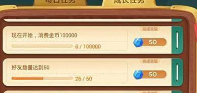 成长任务比较多,而且每个任务都不是特别容易完成的,例如消费金币10000个、好友数量达到50个、拥有1个50级萝卜,完成这些任务通常可以获得50颗钻石奖励。