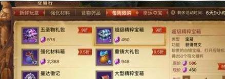 第三善意商店40级以前可以分解的紫装较少时的选择,这里呢并不是叫大家用善意勋章直接购买精粹宝箱,而是善意值买银币,然后用银币去每日商店强化材料里买十个精粹宝箱,这样比较值。