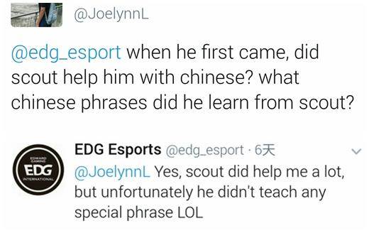 Zet:是的,scout帮了我很多,但不幸的是,他并没有教授任何特别的词语。