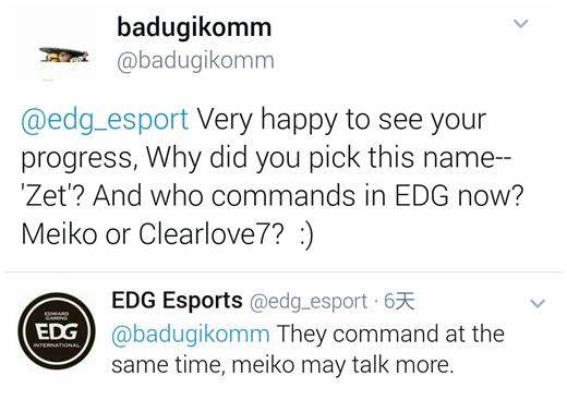 Q3:很高兴能看到你的进步,你为什么要选择“zet”这个名字呢?Edg现在的指挥是谁,meiko还是厂长?