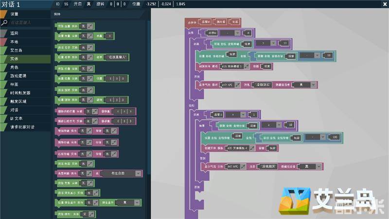 不仅仅是建筑和世界的创造,在《艾兰岛》中,玩家还能开发出单独的游戏模式,赛车、跑酷、逃生等,丰富的游戏想象均将在此转化为现实!人物出生点、触发区域等游戏逻辑清晰可见,配合丰富的游戏素材,编辑器掌握神速的玩家,可以在十几天内就完成一个游戏的搭建。这些,均都得益于《艾兰岛》可视化系统的设定。在编辑器内,场景元素和代码已全被可视化、模块化,简单的拖拽、安放,游戏逻辑便能轻松成型。往昔需要一个个打字生效的命令,如今只要一点一拖就能完成,难度被降低,时间被缩短。在《艾兰岛》编辑器面前,人人都是编程高手,都能够用更短的时间,更省力的完成更好的创意!