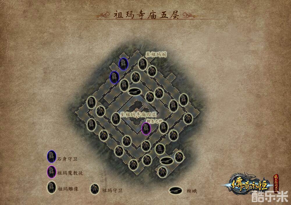 第五层则是类似迷宫的回形走廊,穿过它,就到达玛法大陆上第二个著名的迷宫——祖玛阁了。和石墓阵一样,它也自有一套走法口诀。