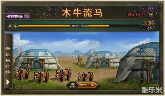 1.木牛和领赏可开获得宝石、经验、丝绸、丝绸锦囊等不同资源奖励,同时还能开出特殊军资奖励;