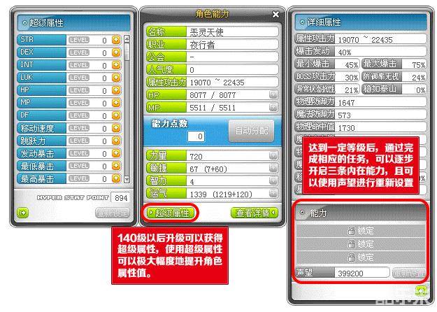 能力值窗口显示了当前角色的能力属性值。角色每升一个等级,能力值就会加5点,您可以在能力值窗口根据角色职业自由分配点数。注:在新手状态下,属性点是无法进行分配的。