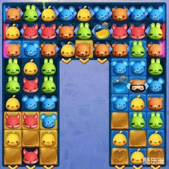 3、由于染色水瓶的存在,我们很容易制造出蓝色或黄色的特殊棋子。有机会将蓝色或黄色的特殊棋子,与任意特殊棋子进行组合使用,其所产生的大范围消除,可以直接收集消除范围内所有对应颜色的玻璃块,更快的完成收集任务。