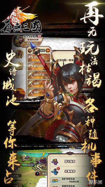 玩法太少不过瘾?日常做完发呆看?抢粮、征税、除贼、平乱、挖矿、兵场演武,外敌入侵,各种随机事件,让你根本停不下来,更有三国史诗城池等你占领,扬名天下,羡煞全服。