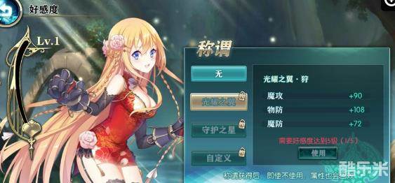 神无月这款游戏有个好玩的地方就是角色自己有好几个称谓,只要增加与角色的好感度就会解锁相应的称谓,还会增加该角色的属性哦,如图上光耀之翼-狩,解锁等级需要与狩好感度5级,相应的属性加成也不错,感情深属性深。